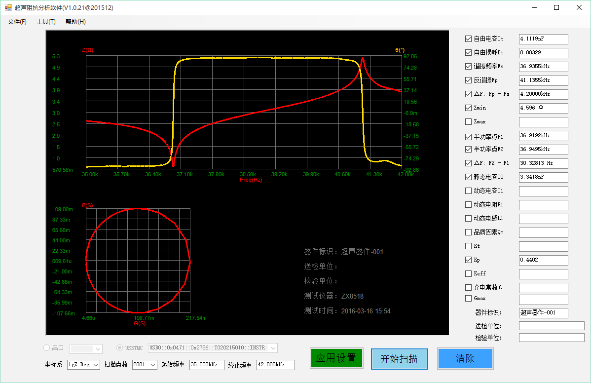 ZX70A/ZX80A系列超聲阻抗分析儀在儀器上就實現(xiàn)掃描圖形,還可以把儀器上屏幕顯示圖形和測試數(shù)據(jù)直接拷貝到U盤。同時儀器自帶電腦軟件界面,標配版無需另行購買。