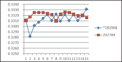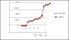 測試速度快了,還必須保證測量數據的穩(wěn)定性,左圖是兩種不同的 機型,大家都用各自的最快測試速度,掃描測試同一個網絡變壓器同一 個繞組的漏感15次的測量數據分布圖,我們可以看到,ZX2789的測量數 據的一致性要略好一些。
