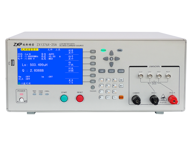ZX1376是內(nèi)建高頻LCR數(shù)字電橋和0~25A直流偏置電流源的電橋偏流一體機(jī),低達(dá)0.25mA的電流分辨率,25A時(shí)輸出電壓高達(dá)11V,可分析電感器中鐵心的特性,作為電感器質(zhì)量檢測或產(chǎn)品特性的分析。內(nèi)置的偏流源噪聲更小,控制更靈活;內(nèi)建比較器,方便組建到電感器檢測的自動(dòng)化生產(chǎn)線。ZX1376型號僅含0~25A直流偏置電流源,可通過標(biāo)準(zhǔn)RS232C接口方便的與外部LCR表連接。
